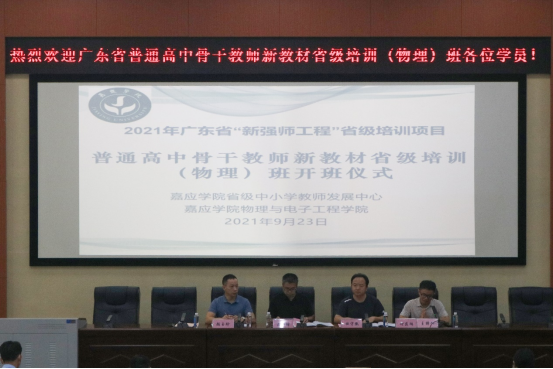 2021年广东省普通高中骨干教师新教材省级培训(物理)班于9月22日至27日在我校举行。教师教育发展中心副主任田守凯、物理与电子工程学院院长王小增,物理与电子工程学院副院长及培训班首席专家钟庆湖、培训班班主任颜玉珍博士及全体培训班学员出席了开班仪式。