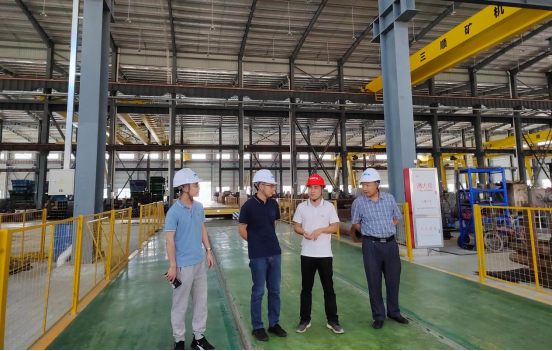 6月29日上午,物理与电子工程学院院长王小增带队一行到广东三顺矿山机械制造有限公司(位于五华县工业园)调研交流。广东三顺矿山机械制造有限公司总经理廖清泉对物电学院一行的到来表示热烈欢迎,廖经理介绍了公司生产经营概况、主要产品及当前生产过程中遇到的问题,针对廖经理提到的轴承发热无法在线监测的问题,调研人员就车间现场的轴承实物及其温度监测进行了技术分析和探讨,已初步形成技术方案。