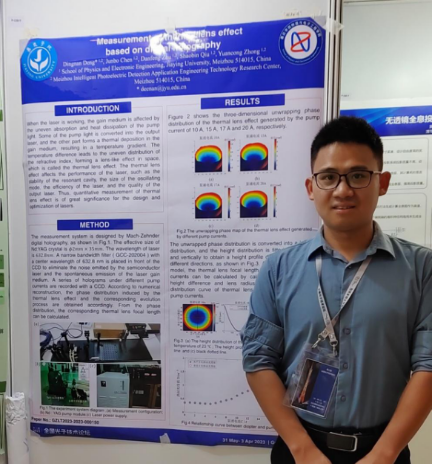 本届论坛设光传感及其应用、光通信与光网络、激光技术与应用、新型光电子器件、微波太赫兹光子学与光电技术、光学显示与光学信息处理六个专题。我院教师朱丹峰博士、邓定南博士分别在新型光电子器件专题和光学显示与光学信息处理专题张贴海报,并介绍了“硅基片上模式转换器设计”和“基于数字全息的热透镜效应测量”方面的科研工作。物理与电子工程学院通过参加本次会议,加强了与国内光学相关领域高校、单位的交流,为今后进一步科研合作及扩大影响力奠定了基础。