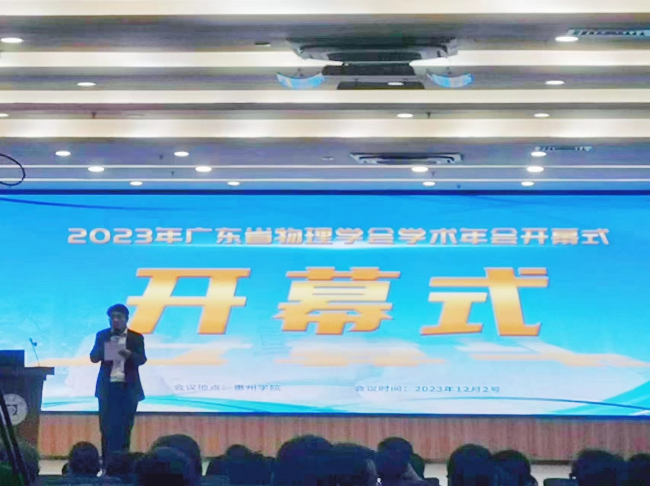 12月1-3日,2023年广东省物理学会学术年会在惠州学院召开,物理与电子工程学院副院长钟庆湖博士等一行8人参加了会议。
