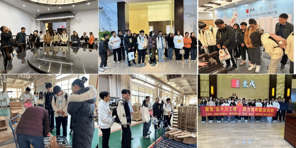 12月27日上午,学生参观了五华农村电商产业园和东成红木文化馆。在澳门未来中心,学生了解五华农特产业和农特产品,参观了电商企业并深入了解产品研发和销售、跨境电商行业发展等相关内容。期间,团县委负责同志与学生们面对面进行交流,分享了“青梅计划””长乐人才振兴八大行动“等相关人才政策,鼓励大家要抓住“百千万工程”的机遇,主动作为,大展身手。在东成红木馆,学生参观了红木家具体验馆,了解国内红木发展历史、产品研发工艺和流程,并参观了红木生产车间,对自动化机械设备进行了调研和学习。