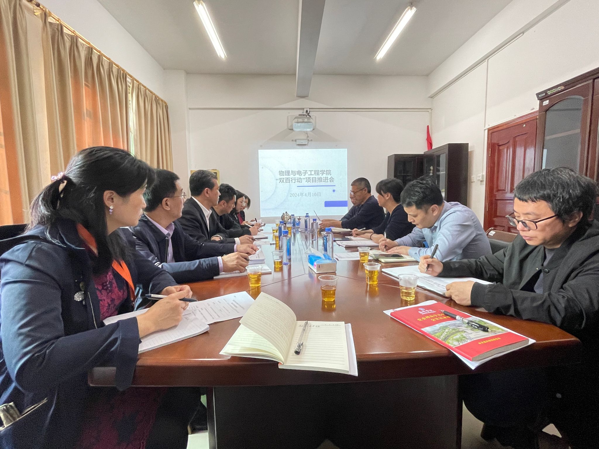 为进一步推进学校二级单位“双百行动”工作,4月10日下午,副校长廖志成带队到物理与电子工程学院开展“双百行动”工作调研。党委办公室、“双百行动”指挥部办公室相关人员及物理与电子工程学院负责人、教师代表等参加了调研会。