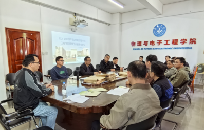 为统筹推进新学期教学重点工作,3月11日下午,物理与电子工程学院在何侨楼110会议室召开2025-2026学年第2学期教学工作委员会会议。会议由院长王小增主持,学院教学工作委员会全体成员及督导组成员参加。