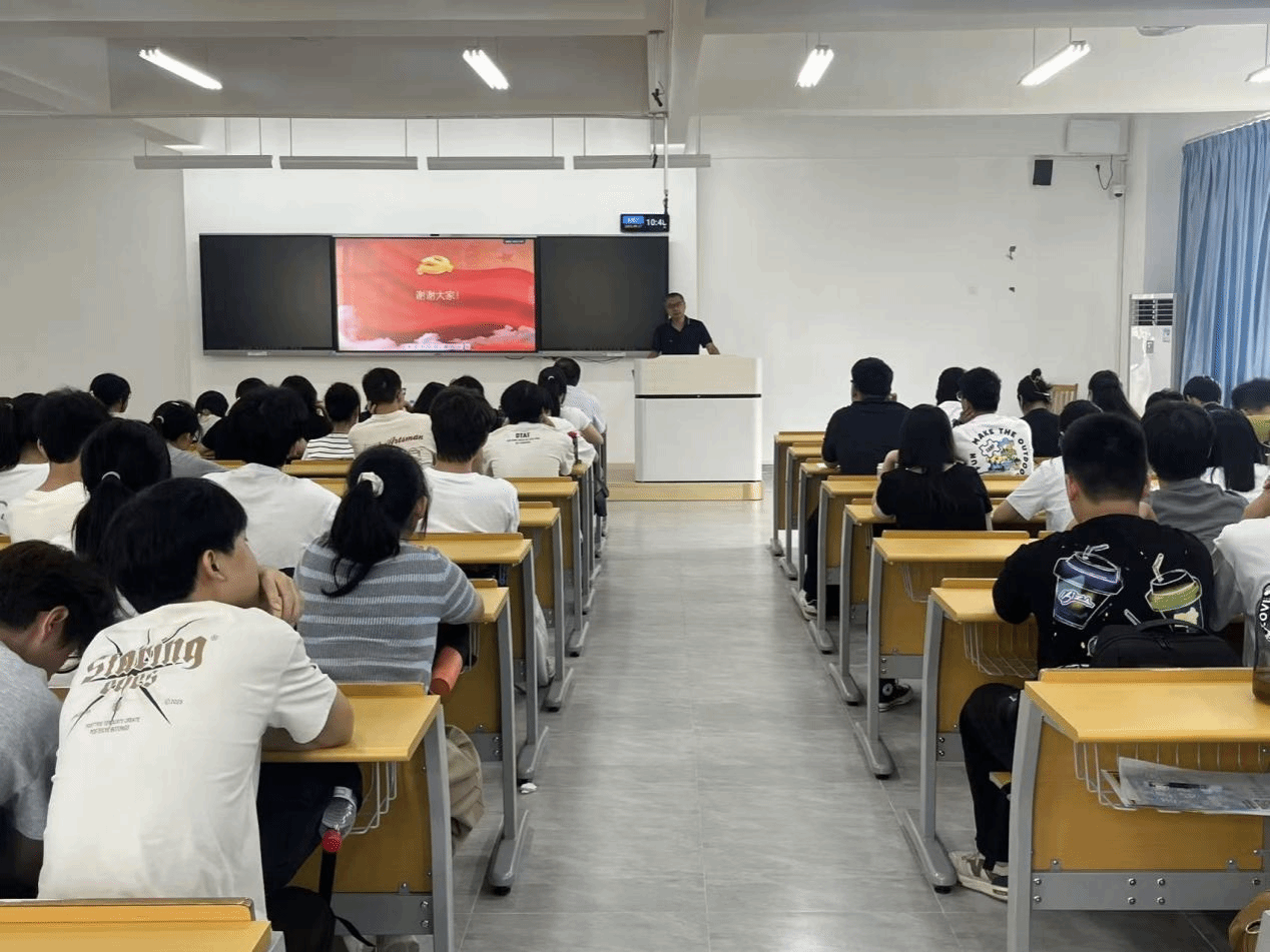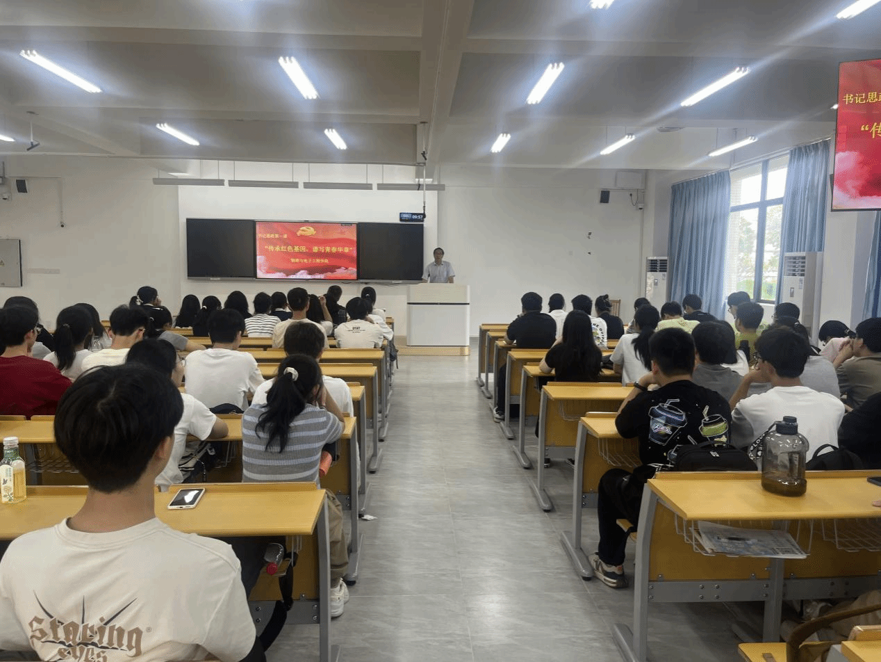 学院党委书记彭永彬‌以《传承红色基因,谱写青春华章》为主题,从中华人民共和国国旗的诞生、梅州革命简史、学院党建情况、新生入党启蒙等四个方面进行讲授,希望同学们传承红色基因,厚植爱国爱党情怀,将青春奋斗融入祖国大业。