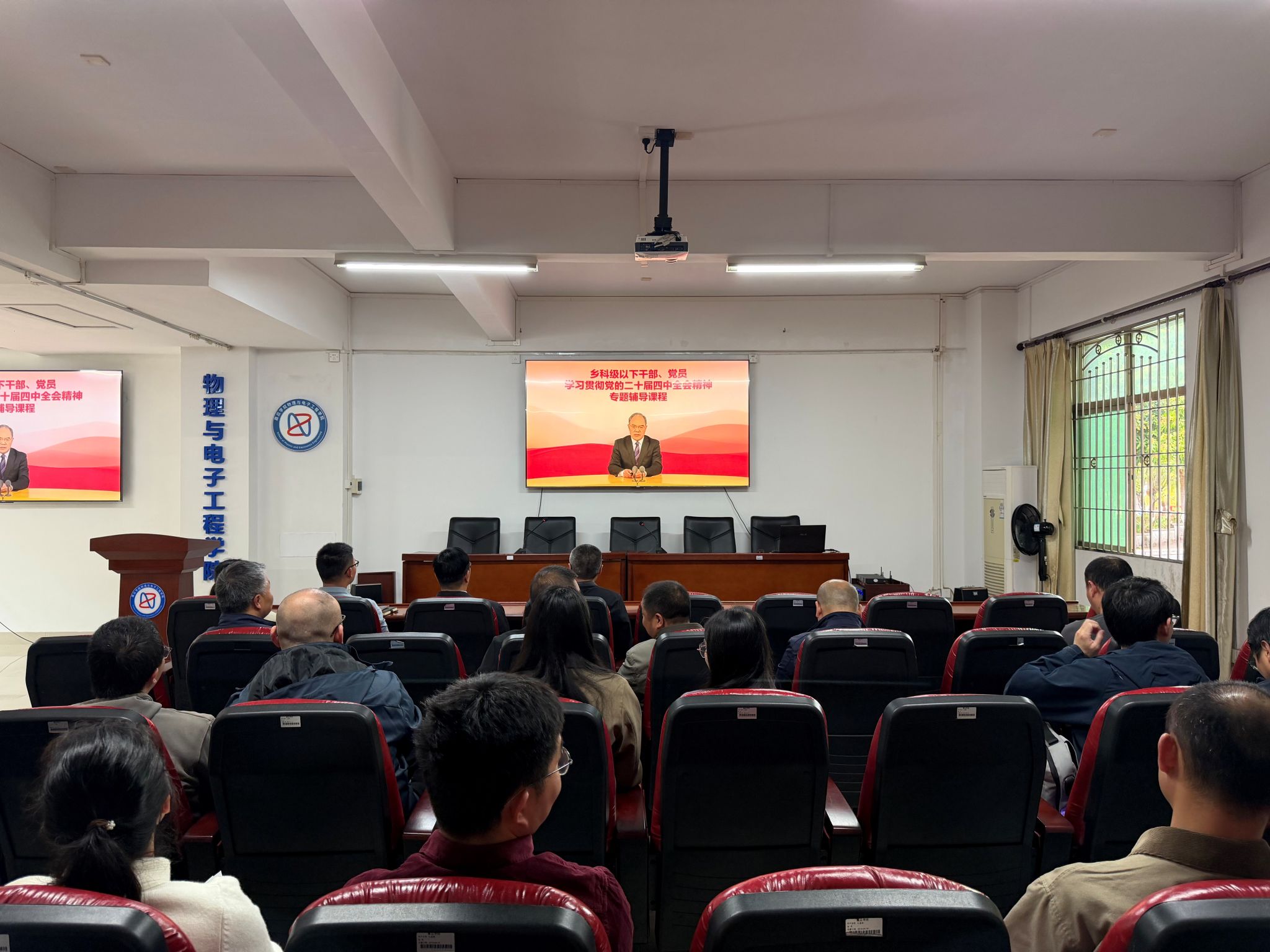 为深入学习贯彻党的二十届四中全会精神,进一步提升学院科级及以下干部、党员政治素养和履职能力,我院按照学校党委统一部署,于3月1日组织科级及以下干部和全体党员开展学习贯彻党的二十届四中全会精神集中培训。