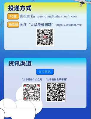微信端 关注“大华股份招聘”(@hua-校园招聘-广东)
